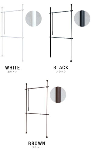 ※[店舗管理用 URL]a17846※[品番]【ホワイト:a17846】【ブラック:a17847】 壁面をたちまち衣料収納に! 突っ張り式の2段ハンガーラック デッドスペースになりがちな壁面をたちまち収納スペースにできる突っ張り式のハンガーラックです。